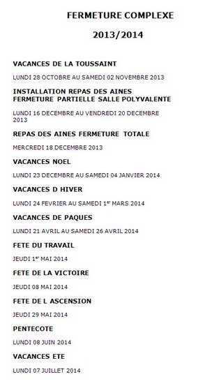 Période de fermeture du complexe sportif du Beausset