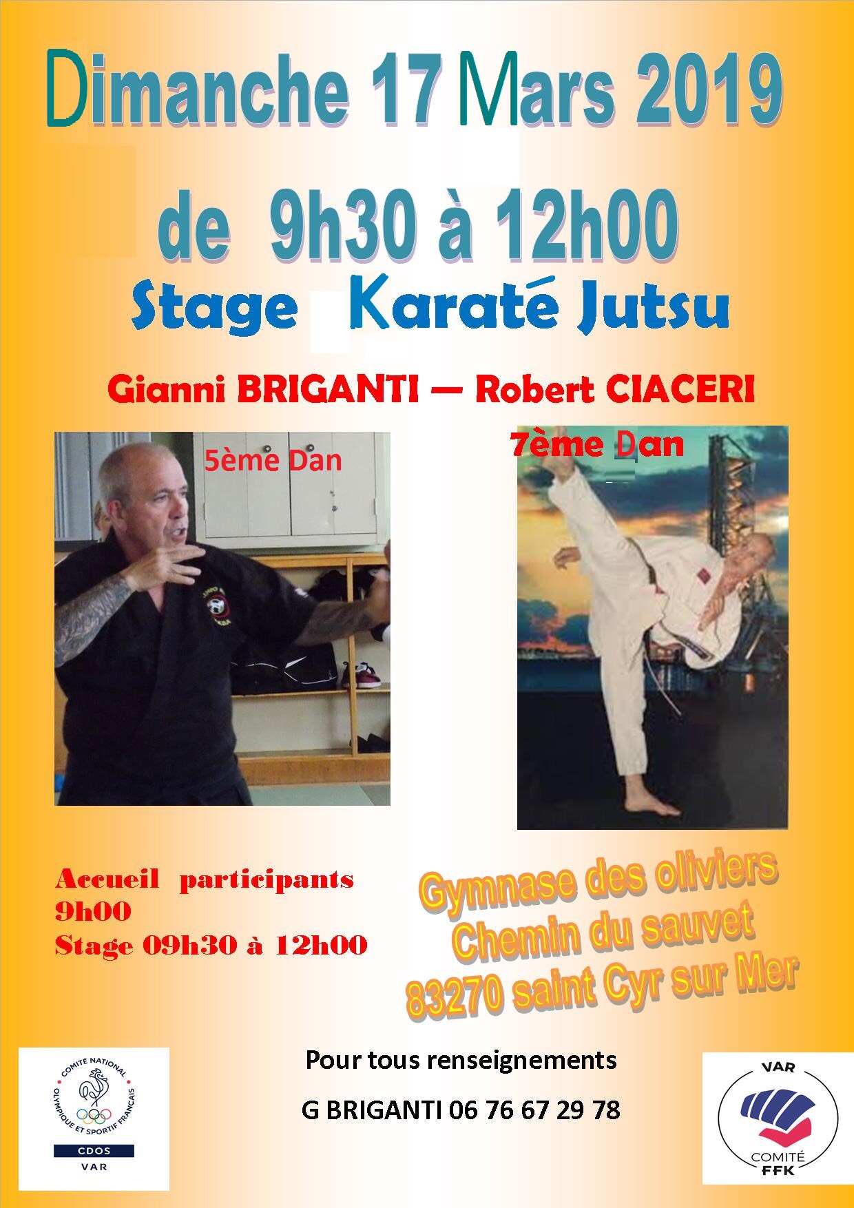 Stage à Cavalaire sur mer le samedi 15 mars 2025 avec Sensei Robert Ciacéri