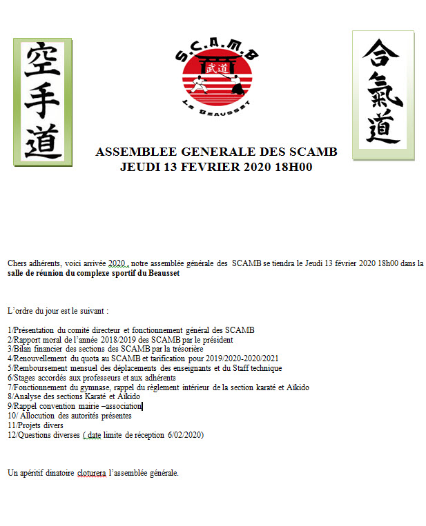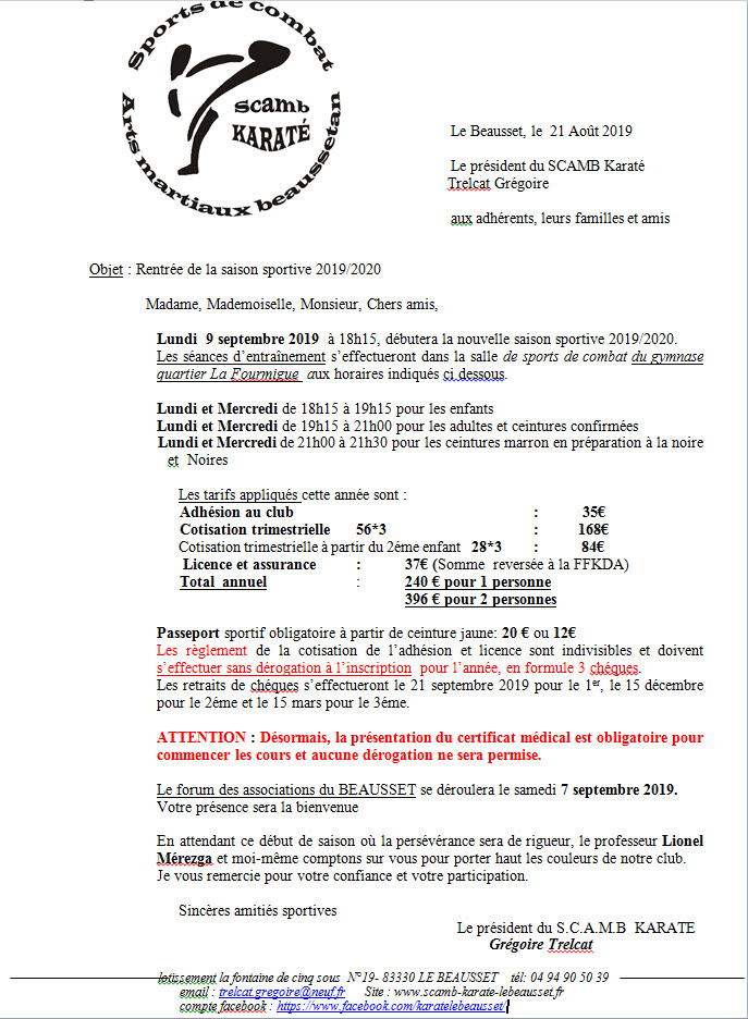 Informations diverses : contact@scamb-karate-lebeausset.fr